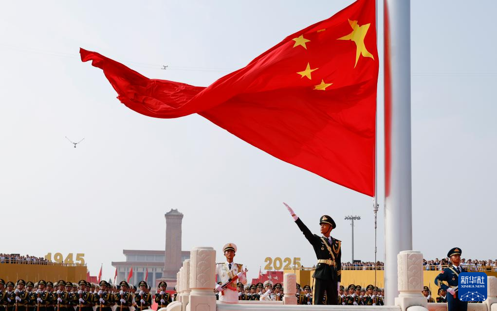 9月3日,纪念中国人民抗日战争暨世界反法西斯战争胜利80周年大会在北京隆重举行。这是天安门广场举行隆重的升国旗仪式。