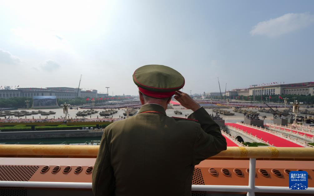 9月3日,纪念中国人民抗日战争暨世界反法西斯战争胜利80周年大会在北京隆重举行。这是观礼嘉宾在天安门城楼上敬礼。