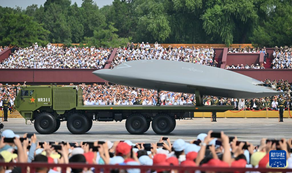 9月3日,纪念中国人民抗日战争暨世界反法西斯战争胜利80周年大会在北京隆重举行。这是空中无人作战方队通过天安门广场。