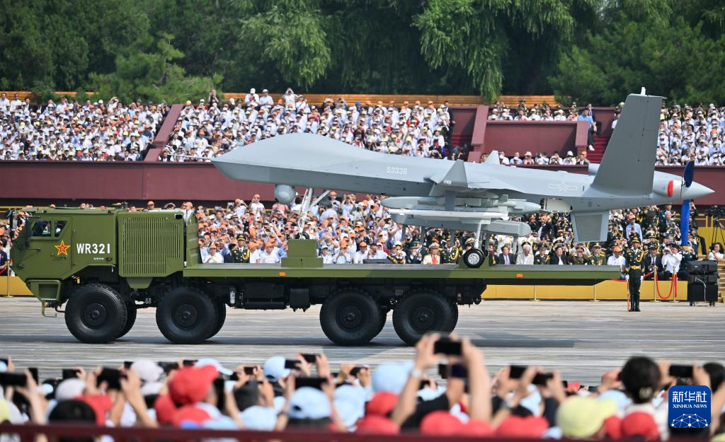 9月3日,纪念中国人民抗日战争暨世界反法西斯战争胜利80周年大会在北京隆重举行。这是空中无人作战方队通过天安门广场。