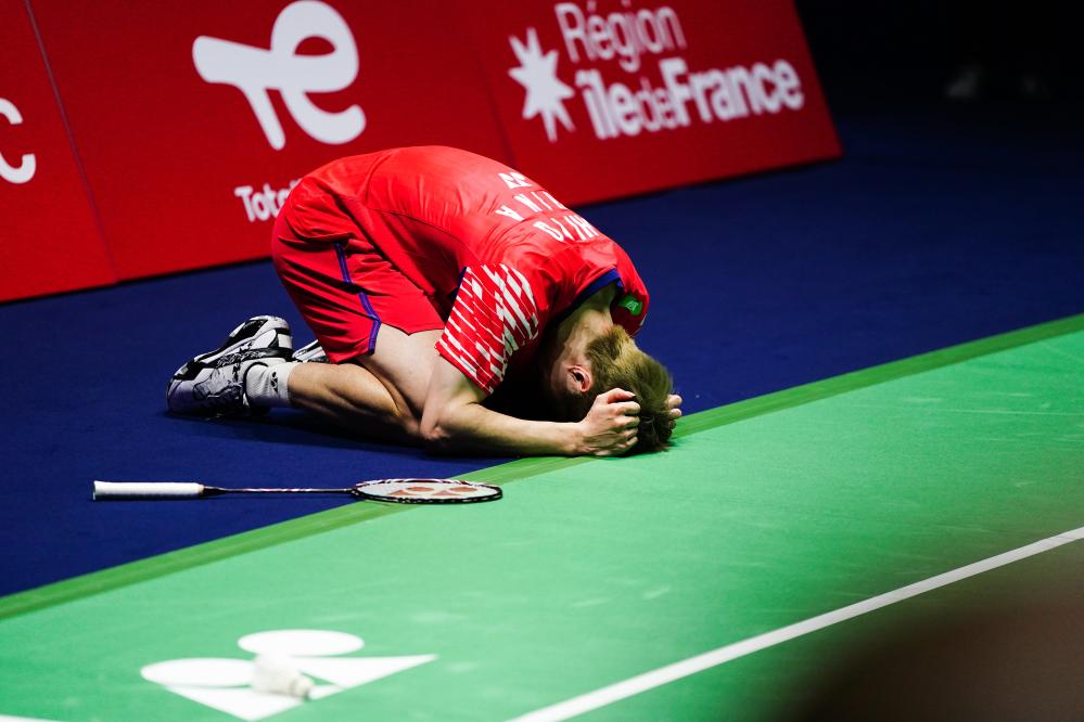 8月31日,石宇奇在比赛后跪地而泣。新华社记者 彭子洋 摄
