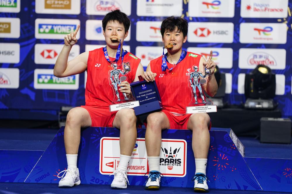 8月31日,冠军中国组合刘圣书(左)/谭宁在颁奖仪式上。新华社记者 彭子洋 摄