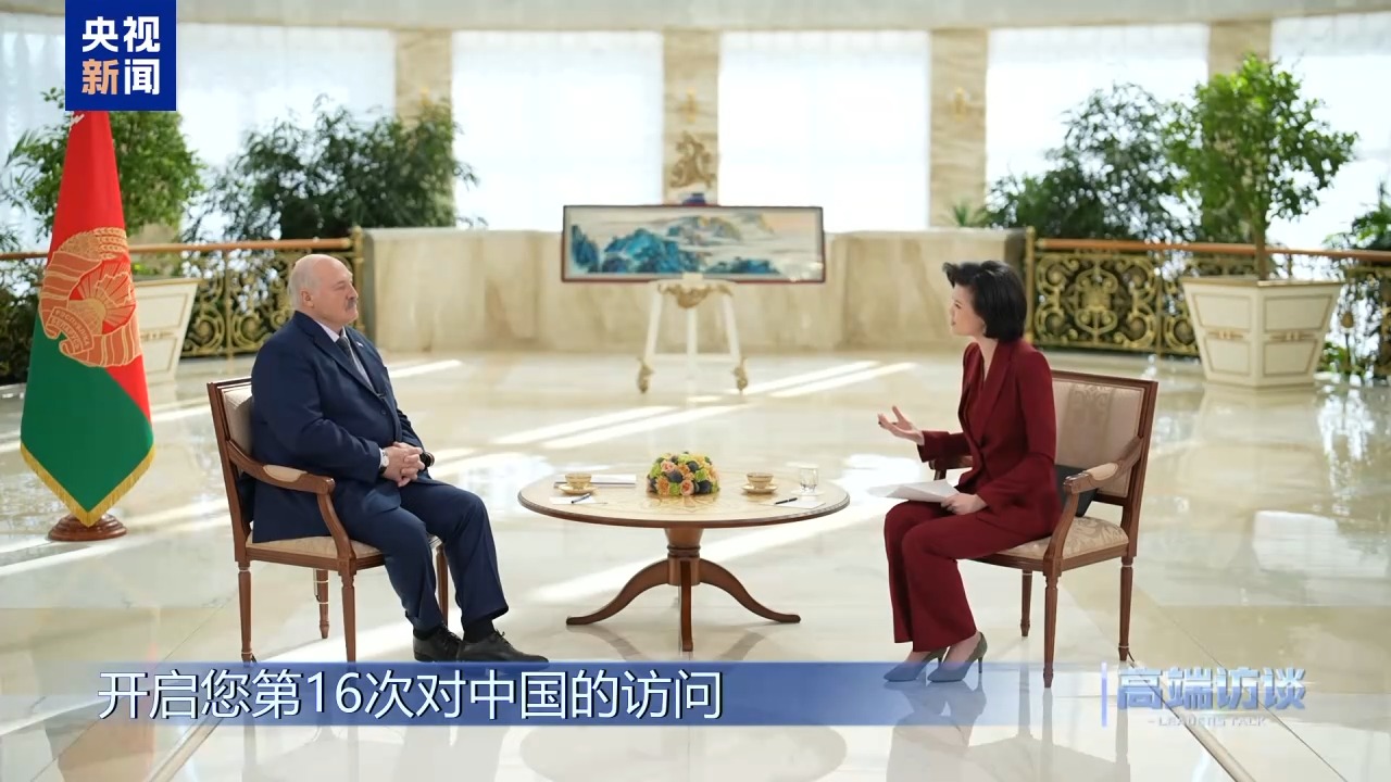 邹韵:卢卡申科总统,您好!感谢您再次接受中央广播电视总台《高端访谈》的专访。我们知道您在担任总统期间先后15次访问中国,并且即将在本月底开启您第16次对中国的访问。这么密集地访华,是不是因为您把中白关系放在一个极为重要的位置?同时对于即将开启的访华之旅,您有什么样的期待?