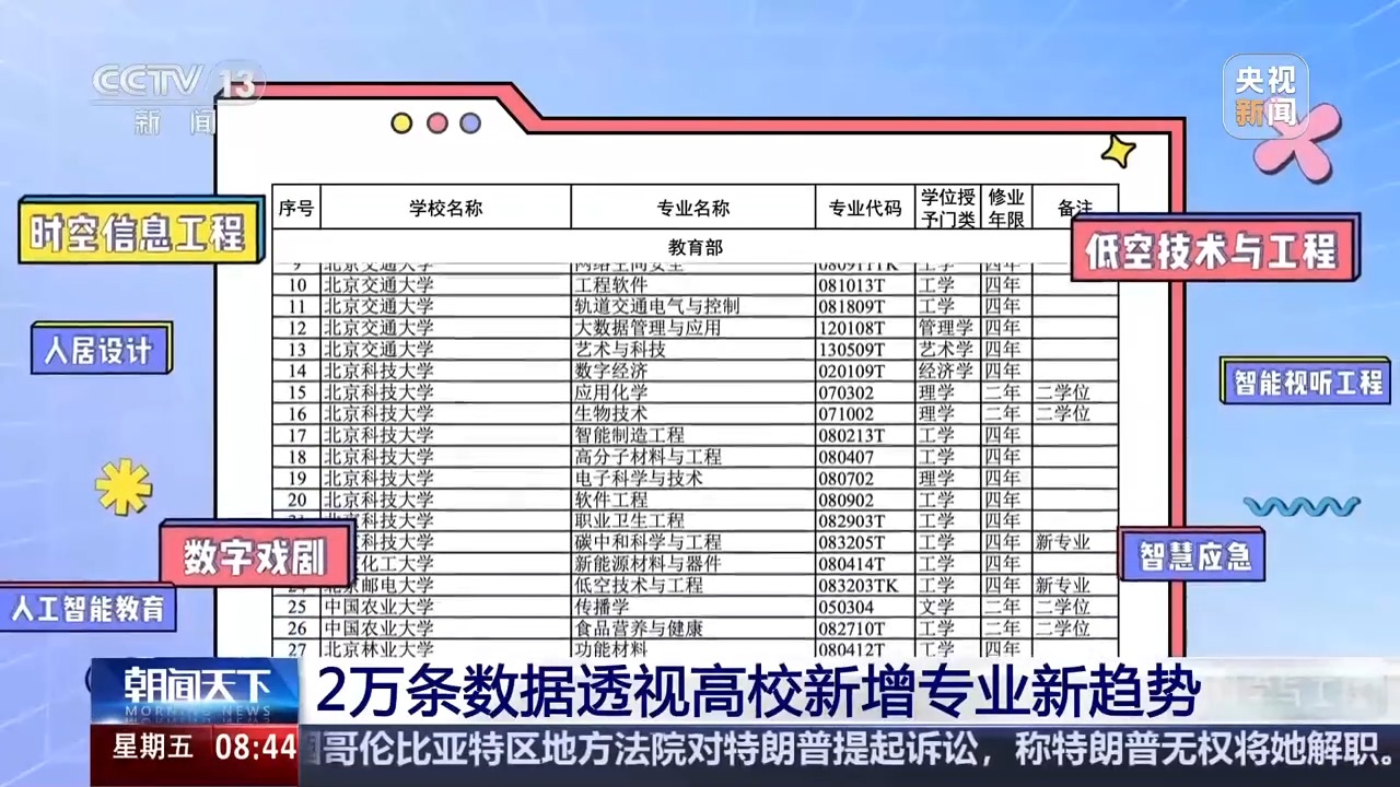 数据还显示,一个趋势正在重新变得清晰,传统工科又热了起来。电气、自动化、机械这些专业因为新能源转型、先进制造,再次站上了热门舞台。而与此同时,跨界复合型专业也在不断升温:教育叠加人工智能,艺术叠加科技……这些专业培养的是真正能适应未来变局的“多面手”。