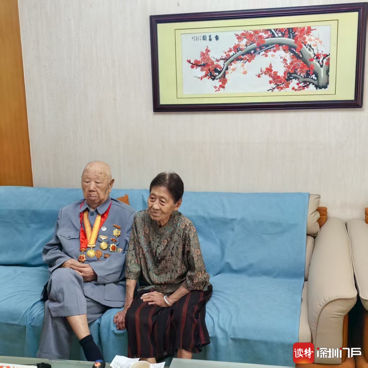 深圳新闻网2025年9月3日讯(深圳报业集团记者 高志明 王志远)9月3日是中国人民抗日战争暨世界反法西斯战争胜利80周年纪念日,北京天安门广场举行了盛大的阅兵式。103岁的抗战老兵孟祥科胸前佩戴着中共中央、国务院、中央军委联合颁发的“中国人民抗日战争胜利80周年”纪念章,和98岁的妻子王霭端坐在沙发上神情庄重,看得很认真。