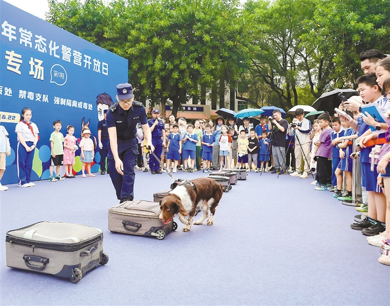 为满足广大青少年对警营的探索欲望,深圳公安在以往每年举办一次全市性警营开放日活动的基础上,自2024年起以每月一次的频率举办常态化警营开放日活动,向广大青少年及家长展示警营文化、警用装备、警务技能,每一期都有众多的少警队员到场参与交流互动。目前,每月一期的常态化警营开放日活动已举办17期,吸引了线上线下100余万人次参与,有效促进警民线上线下的双向互动。深圳市北斗小学学生吴宇涛说,他参加过3次警营开放日活动,每次都能学到新知识、获得新技能,也有许多新感受。在今年4月的常态化警营开放日罗湖分局专场活动中,他进一步了解到几种新型毒品的误用路径和危害,还和一些同学分享了怎样远离毒品。