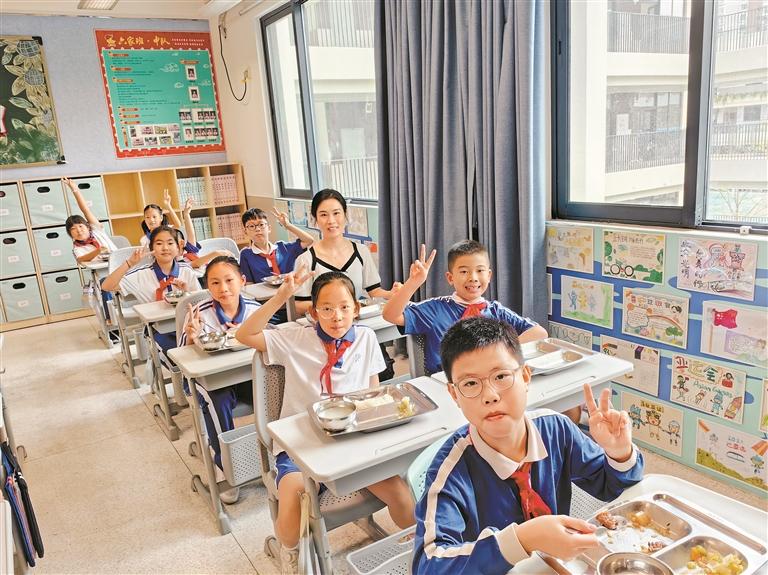 深圳小学生在学校享用健康营养午餐。 (受访者供图)
