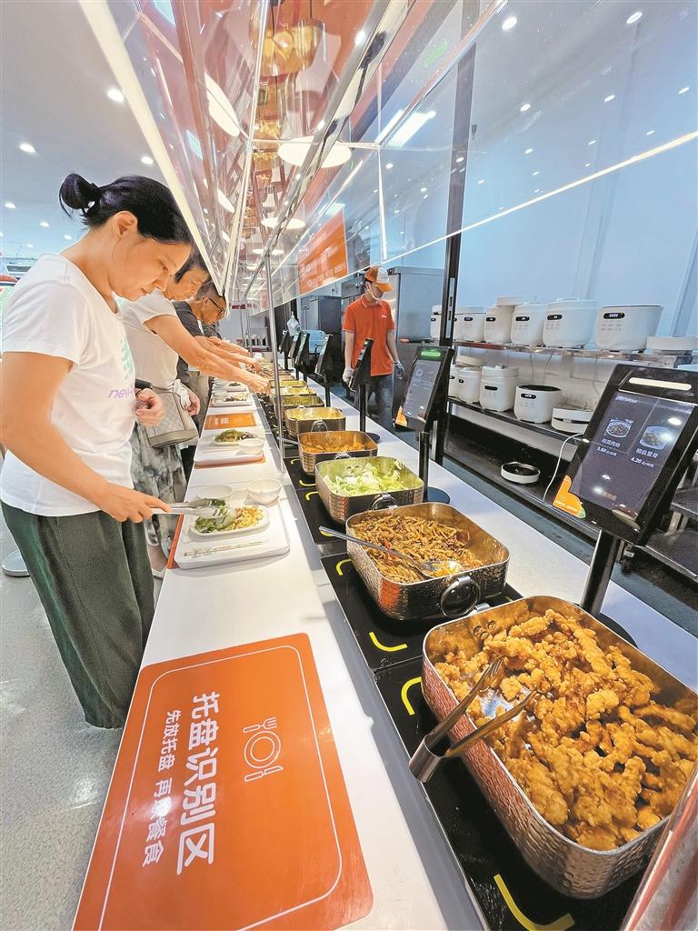 什么是健康食堂?深圳市慢性病防治中心表示,健康食堂有明确的规范标准,包括必须配备健康生活方式指导员、营养配餐人员,厨师能够制作至少5种低盐少油菜品等。此外,健康食堂要在适当位置摆放健康支持工具和健康生活方式宣传资料,提供低盐低油菜品且菜肴品种丰富,指导就餐者合理膳食。同时,鼓励食堂为特殊人群提供膳食,如孕妇餐、长者餐、糖友餐等,在菜单上对每种菜品的原材料、食物成分及能量进行标注说明。