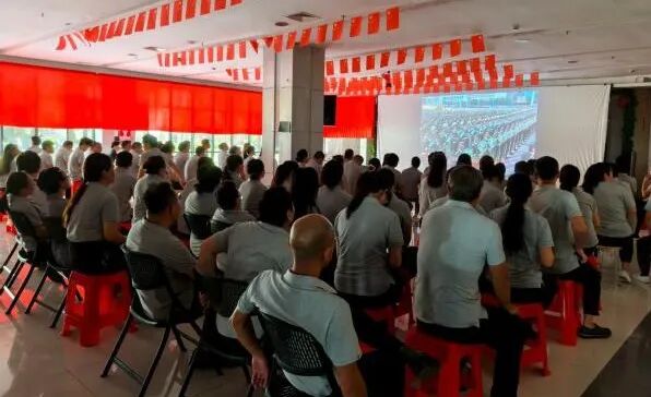 “集团公司组织观看九三阅兵。一声声号令,一队队战士,一辆辆战车,一架架雄鹰,心情沸腾,激动的眼泪,伴随庄严和震撼,勿忘历史,珍爱和平。我们作为基层党员,见证祖国伟大,见证中国力量,深深感受没有中国共产党,就没有新中国,让我们一起携手同行,奉献自己,回报社会。”深圳市坪山区海普瑞药业有限公司高级工程师曾昌仲表示。