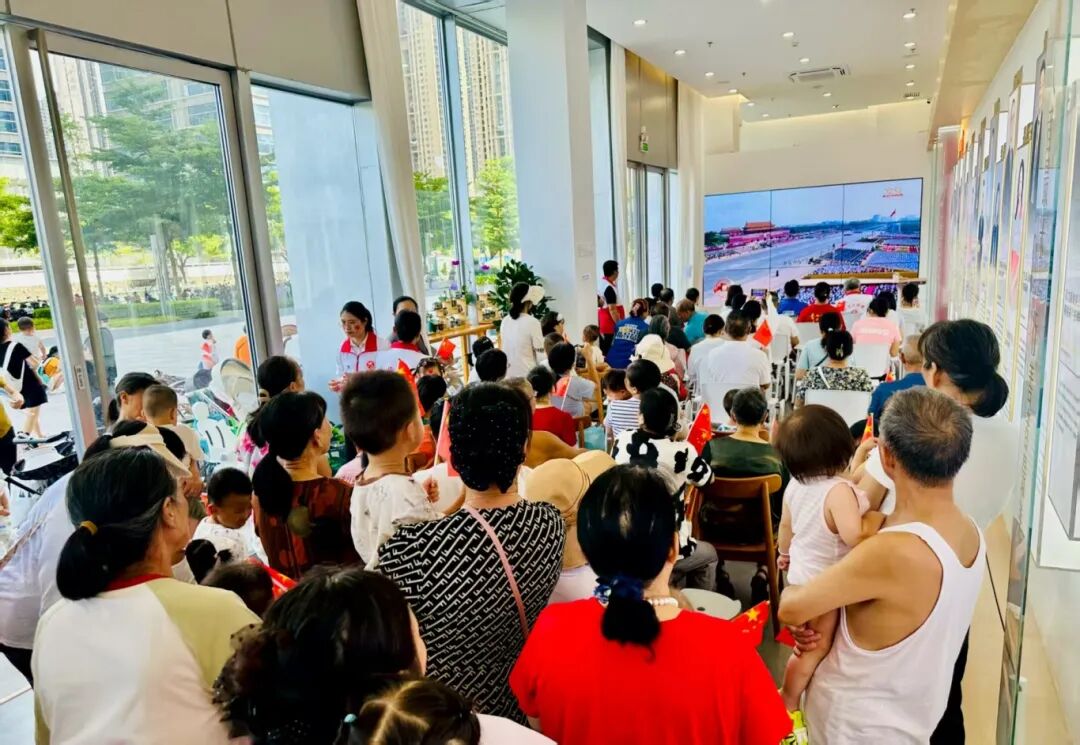 坪山区新时代文明实践中心(所、站)组织辖区党员、群众等集体观看纪念中国人民抗日战争暨世界反法西斯战争胜利80周年大会直播,吸引千余名居民参与。