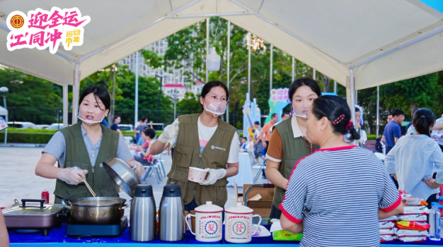 最火爆的还属食堂美食区。29家单位食堂各显身手,碗仔翅、虾饼、蒜香炸鸡腿等大厂食堂招牌菜式“圈粉”无数,13000份餐品3小时兑换一空。万晖(五金)深圳有限公司食堂的碗仔翅浓鲜滑口,传递出“暖胃更暖心”的企业关怀;深圳平乐骨伤科医院的中医药膳,养生又美味,摊位前人流络绎不绝。