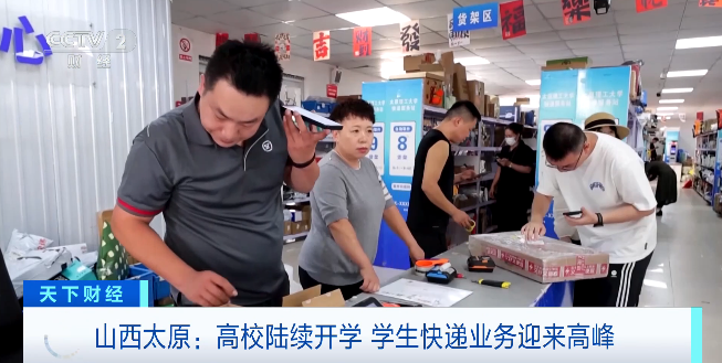 在山西太原市,随着高校陆续开学,不少学生选择“人还未到、行李先至”的轻装入学方式,通过快递将个人行李寄到学校,也带动开学季的学生快递业务进入高峰。