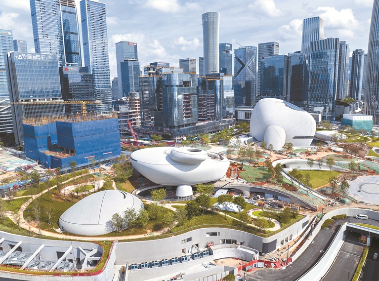 近日,记者实地探访位于南山后海之滨的深圳湾文化广场。该项目以海边原石为灵感,采用“水落石出”形态设计,8座错落分布的“原石”建筑巍然矗立,在现代都市映衬下展现出独特而富有张力的艺术景观。据了解,深圳湾文化广场共设九大展厅,展陈面积超5万平方米。目前项目建设已进入收尾阶段。