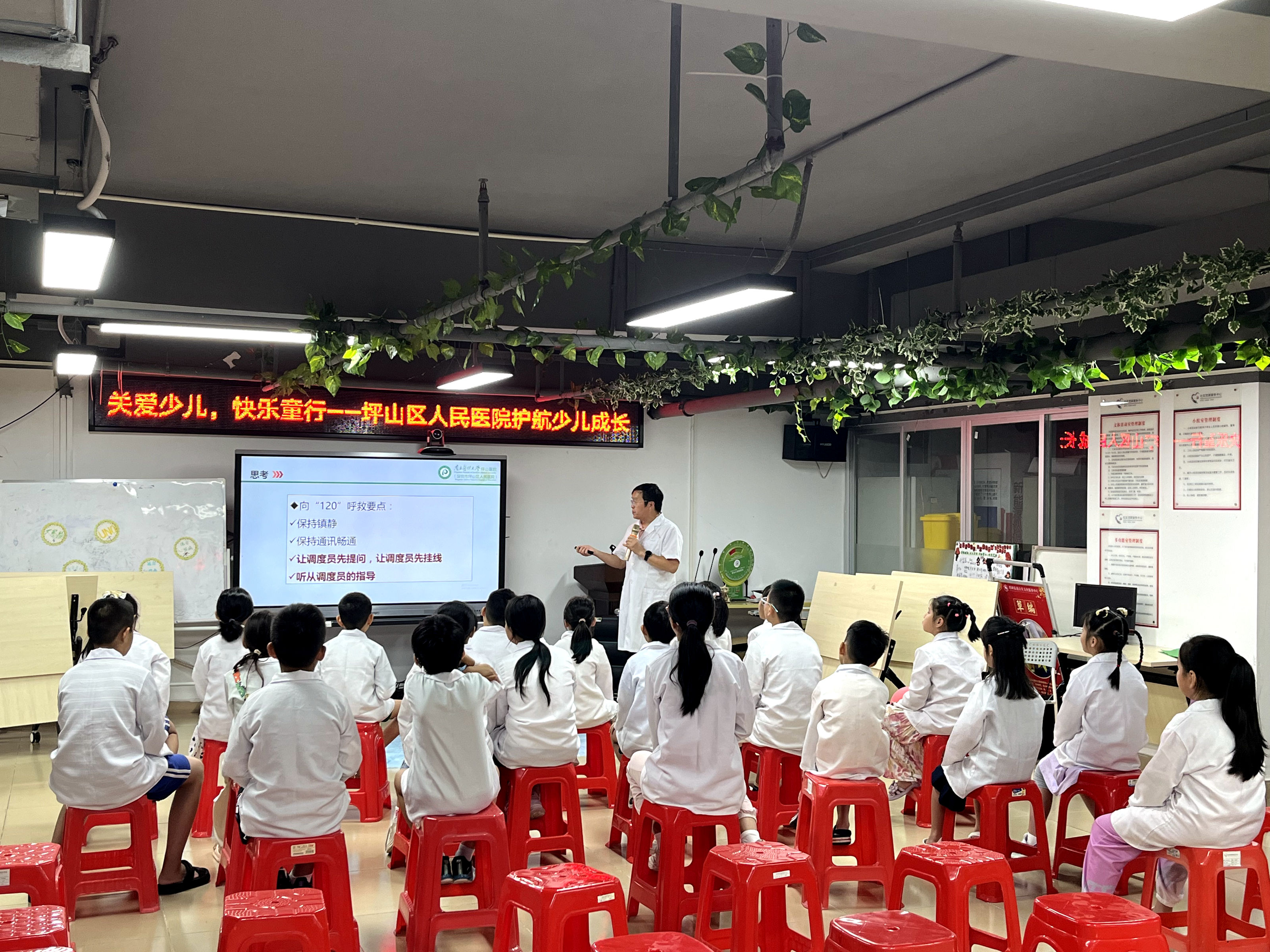 马峦社区党群服务中心携手坪山区人民医院开展“关爱少儿,快乐童行”护航少儿成长活动。参与活动的社区孩子们通过学习化身“小小医生”,在沉浸式体验中收获健康知识,掌握急救技能。