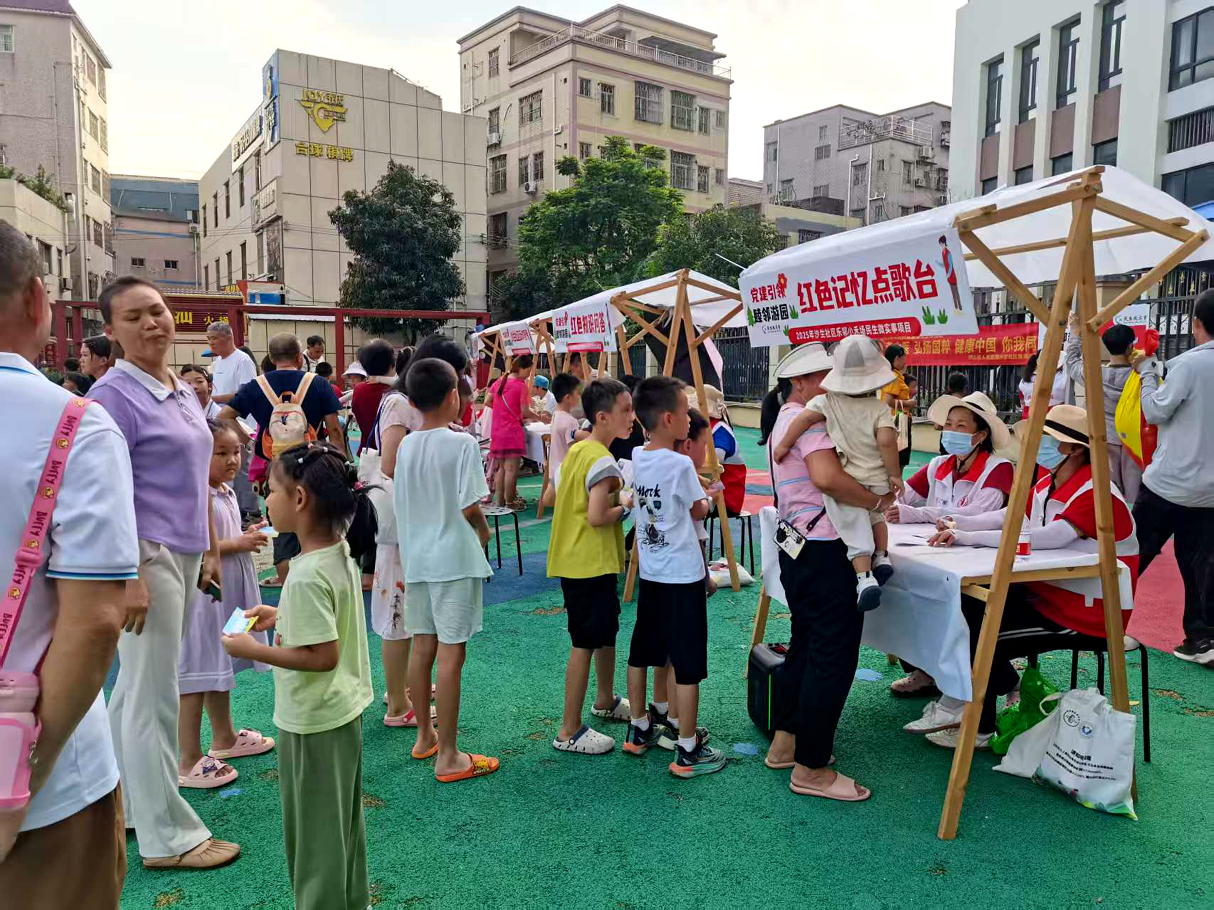 活动特别设置了“红色记忆”主题专区。经典歌曲《歌唱祖国》《我的祖国》的旋律回荡在园区,居民自发跟唱。红色点歌台前,老兵王叔为大家动情讲述参军事迹,孩子们围在其身边静静聆听。