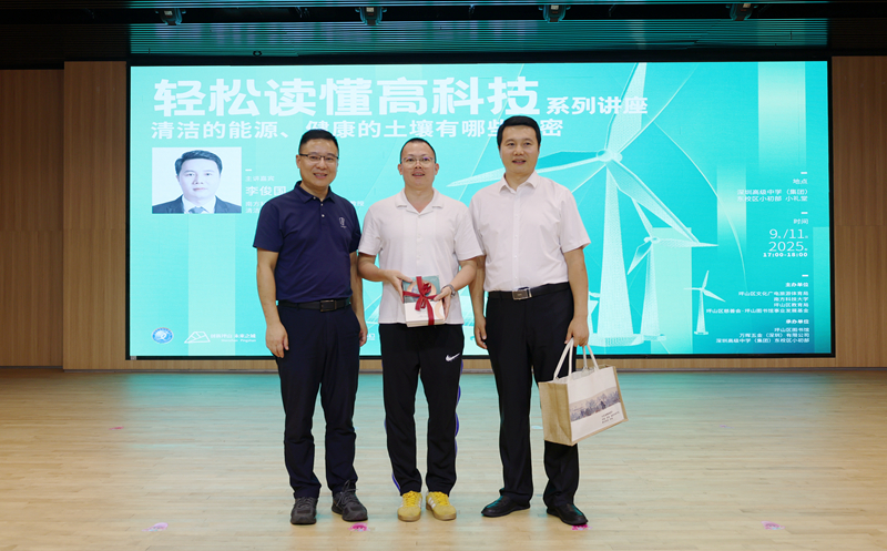 南方科技大学创新创业学院研究教授、清洁能源研究院院长助理李俊国以《清洁的能源、健康的土壤有哪些秘密》为题,用通俗易懂的案例语言与严谨的学术逻辑,解析清洁能源、土壤技术及双碳协同机制,激发学生环保创新兴趣与实践思维。