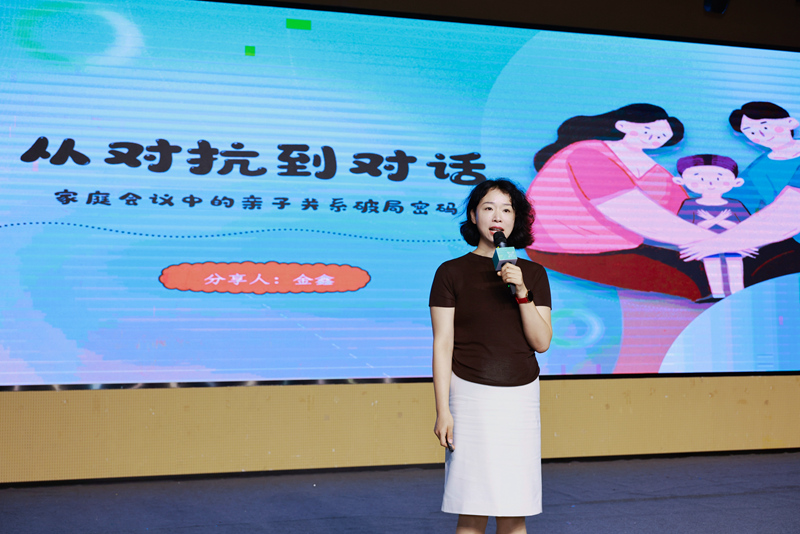 东北师范大学坪山实验学校杨静老师随后带来《家庭会议——亲子沟通的有效策略》主题分享,她指出“家庭会议不是临时性的纠纷调解机制,而是常态化、制度化的家庭治理方式”。坪山高级中学金鑫老师从“对抗到对话”的转变角度补充道“家庭会议为各方提供了平等表达的平台,是从权威型管教向民主型治理转变的关键一步”,并现场分享了“谢-事-议-乐”四步法和“防翻车技巧”的实操攻略。