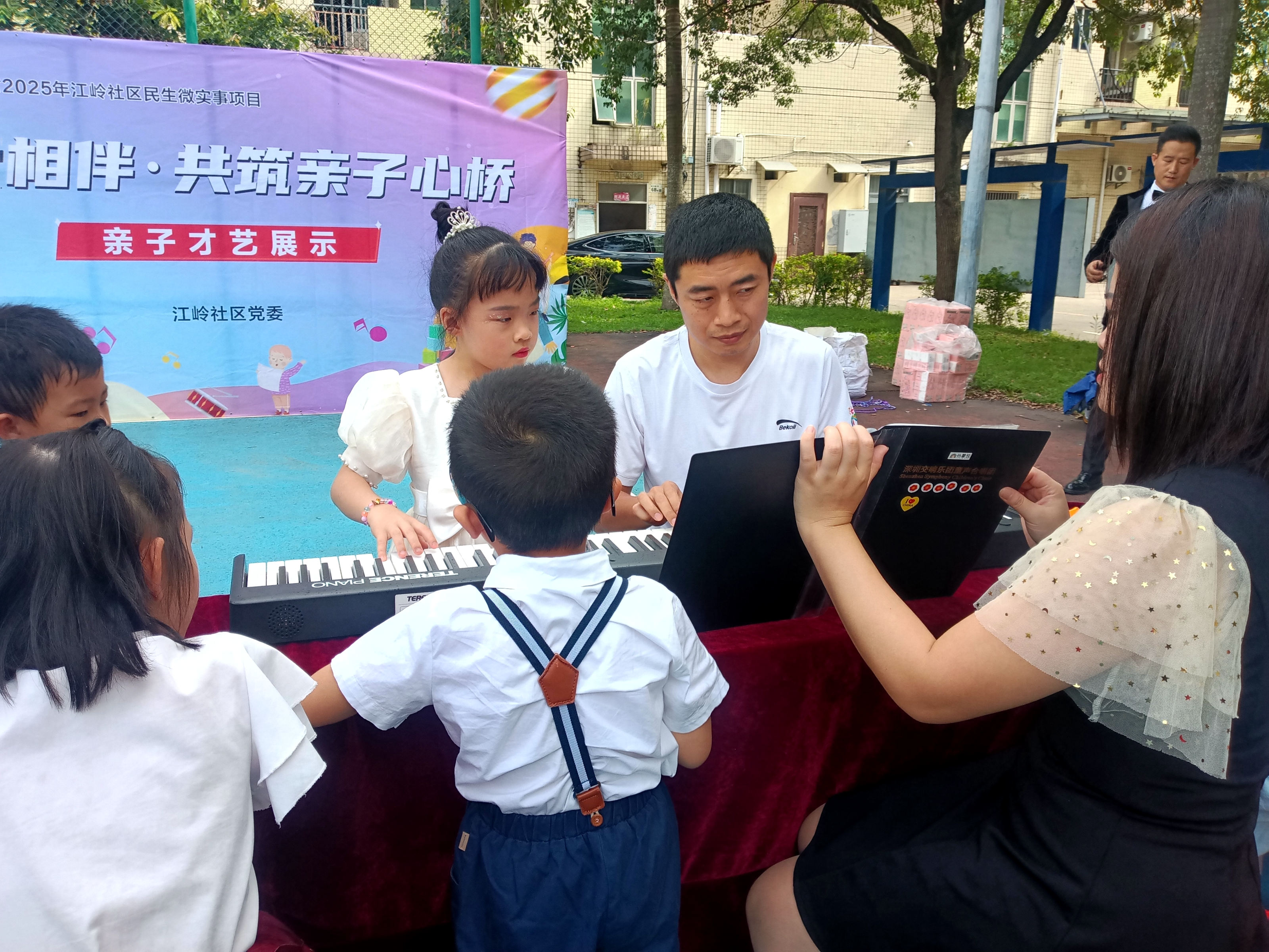 在江岭社区香江工业园区党群服务中心,一场以“以爱相伴,共筑亲子心桥”为主题的职工亲子才艺展示活动热烈开展。本次活动为江岭社区民生微实事项目之一,旨在通过才艺展示促进亲子互动,丰富园区职工业余文化生活,增强社区凝聚力。