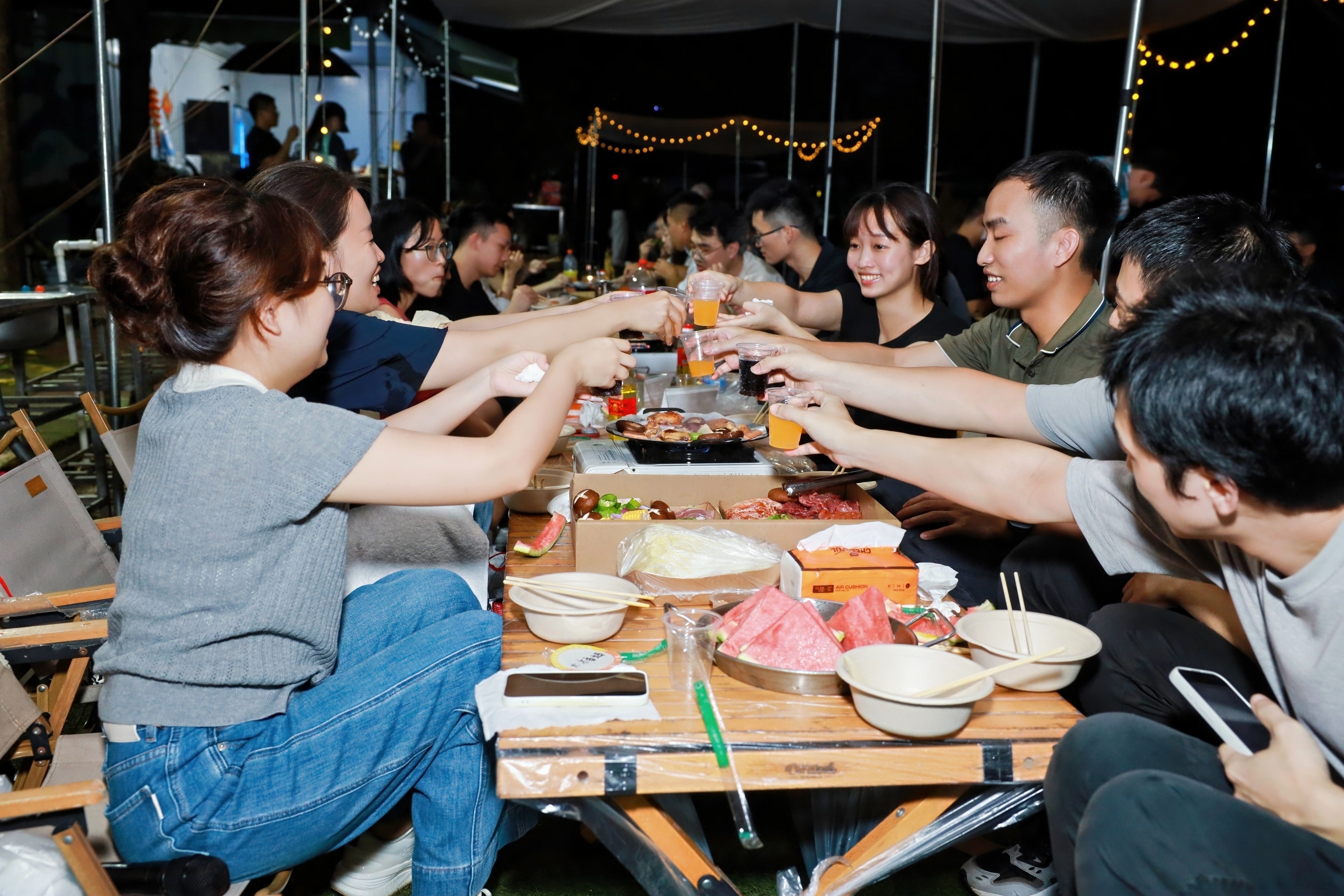 除了充满农耕乐趣的割稻、打谷,活动还精心设置了金秋长桌宴与稻香音乐会两大特色环节,让田园体验更加丰富立体。喷香的烤肉、丰富的果蔬……每一道都充满烟火气。青年职工们自由围坐,或分享割稻的趣事,或畅谈工作与生活的感悟;夜幕降临,稻香音乐会准时开场。没有华丽的舞台布景,稻田就是天然的背景板,在场青年职工“即兴开麦”,心里的烦恼和压力在歌声、美食与自然的多重治愈下悄然散去。“这个活动很有意思!”参加本次活动的李女士笑容满面地说,坪山有山有水,青年人可以在坪山有各种新奇的体验。谈及活动氛围,同样参加了活动的先生表示,坪山的活动给了他和同龄人相互交流的平台,“坪山是一个能促进我们共同成长的地方。”