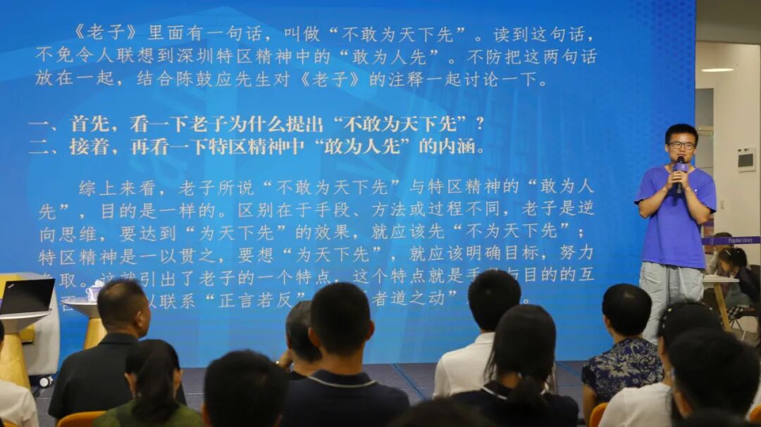 深圳新闻网2025年9月22日讯(记者 邱嘉熙)9月20日下午,坪山图书馆二楼公共阅读文化体验馆内书香弥漫、思想交融,“与周国平共读经典”第三站——《老子》小讲及读者互动活动在此温馨举办。众多传统文化爱好者齐聚一堂,跟随坪山图书馆馆长周国平深入《老子》的智慧海洋,聆听优秀读者的心得分享,在经典与现实的碰撞中,完成了一场充实的心灵之旅。