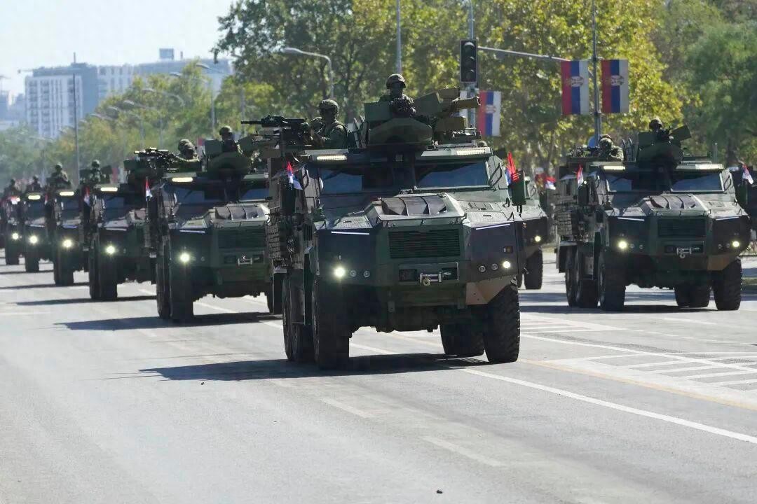 此次阅兵式在塞尔维亚宫举行,伴随着激昂振奋的乐曲,塞尔维亚总统武契奇、总理马楚特和国民议会议长布尔纳比奇等步入观礼台。多国政要、军事代表和驻塞使节出席阅兵式。