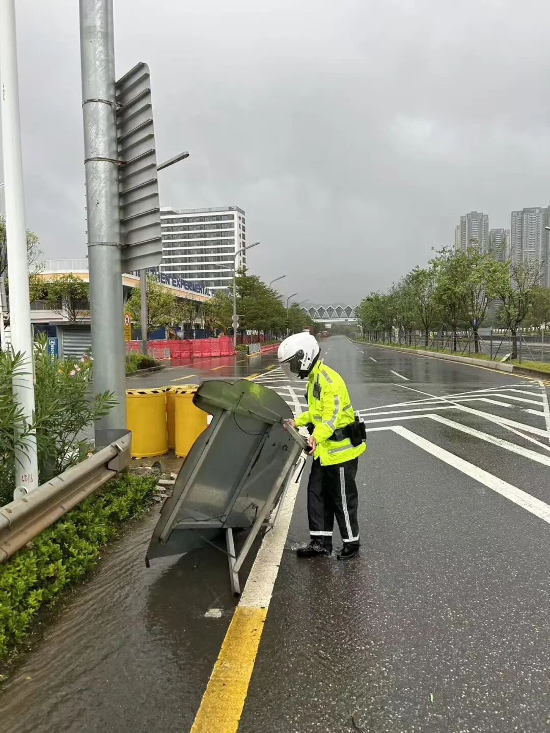 针对树木倒伏、树枝占道等情况,区交警、应急管理、三防等部门加强巡逻,及时对路面进行清障、排除隐患、保障畅通。