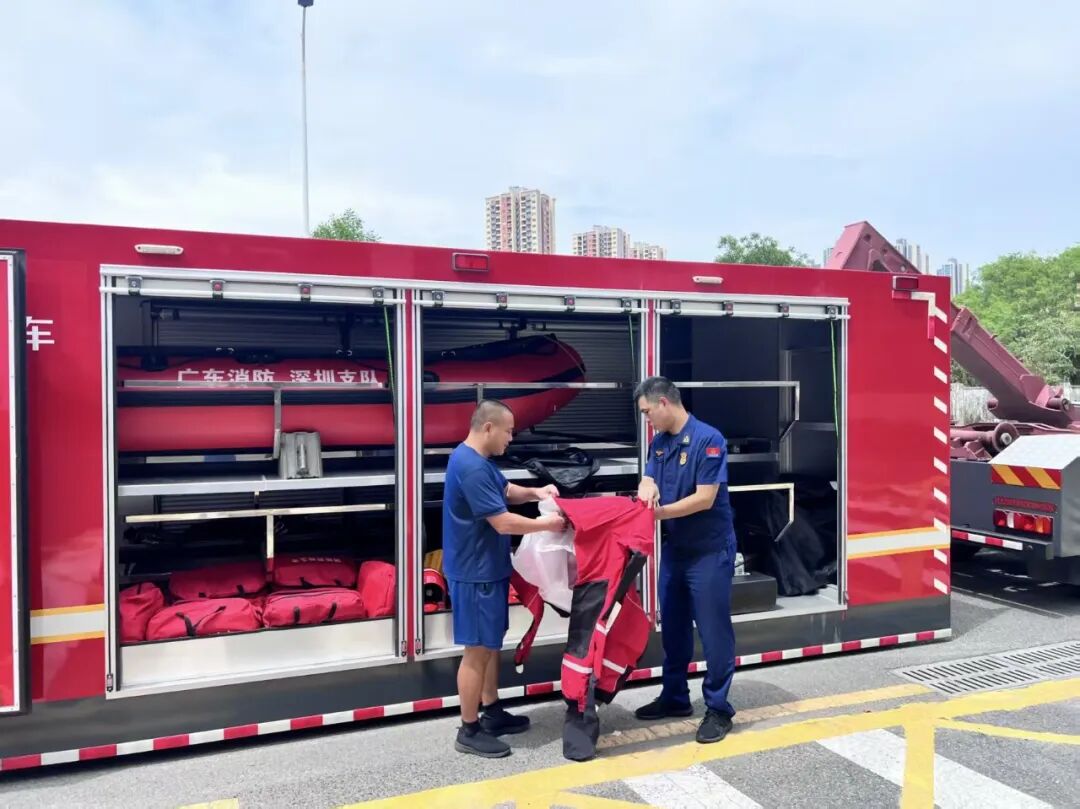 区消防系统在关键区域设置前置执勤点出动人力、车辆靠前布防、抵近指挥,确保对可能发生的险情,做到早发现、早处置,坚决筑牢防汛抗台救援安全防线。