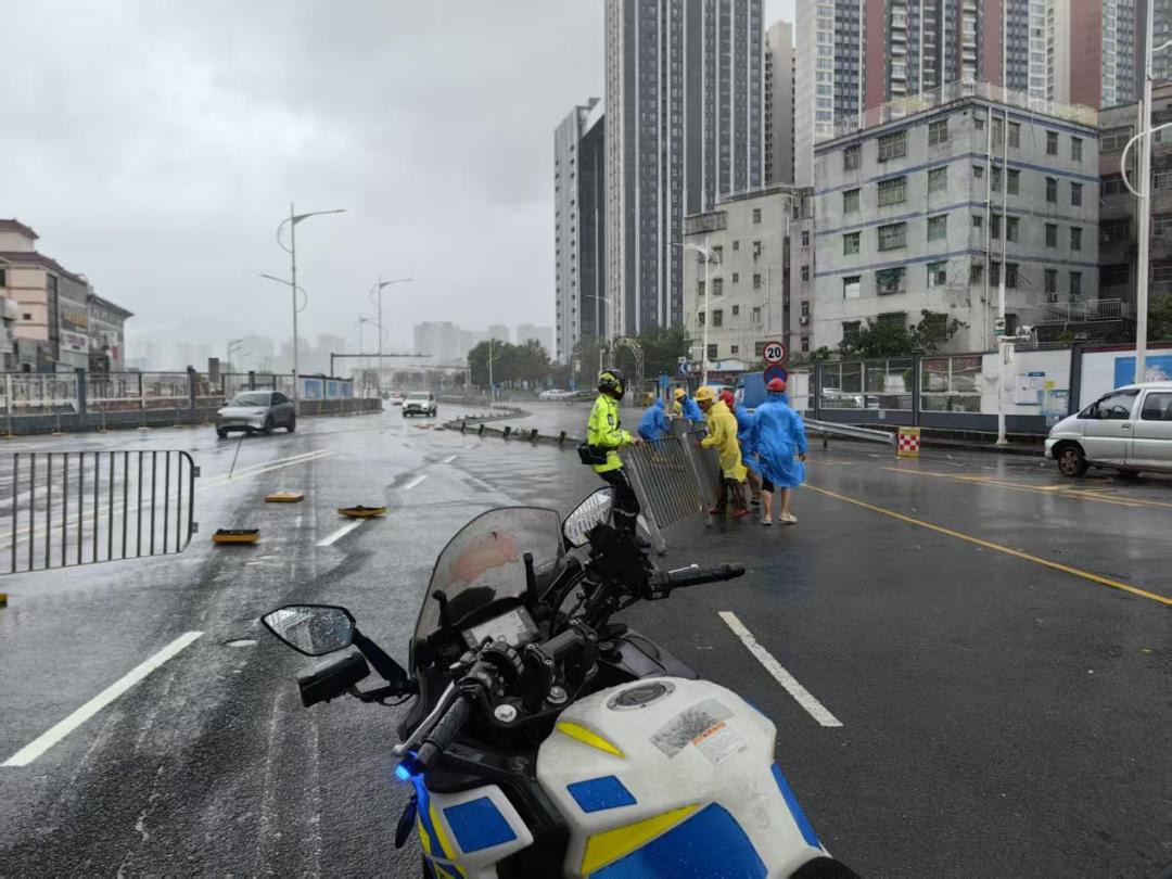 交警部门持续在岗在位,巡逻中发现路面有护栏、树木等倒下影响机动车道,导致机动车不能正常通过,铁骑队员和维护部门的人员迅速进行清理,及时恢复正常交通。