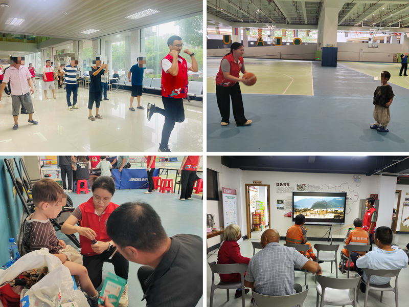 温情服务 “抚人心”,把暖意融进陪伴里。社工总能精准接住居民的需求:石井社区放起电影,让安置时光不枯燥;六和社区社工蹲在地上给受伤孩子涂药膏,陪小学生写作业,还带着孩子打篮球,笑声盖过了窗外风雨声;龙田社区专门安排女性社工 24 小时陪着吴奶奶,帮她端水、铺床,睡前还唠两句家常;和平社区社工找来了“小小志愿者”,帮不会写字的老人写下心里话。这些细碎的陪伴,让安置点满是家的温度。