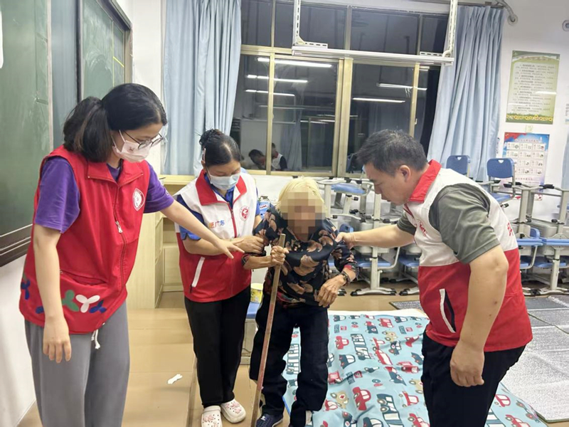 在龙田小学避难点,社工们注意到吴奶奶行走不便,及时帮助其测量血压,密切关注身体状况,从送一日三餐到夜间查铺盖被,给予吴奶奶无微不至的关怀。动态巡查,确保安全。 社工和志愿者组成巡逻队,定时巡查避难场所的设施安全、卫生状况,关注群众诉求情况,及时处理突发小问题。同时,密切关注台风动态和上级指令,通过场所内的广播系统及时发布信息,稳定群众情绪。
