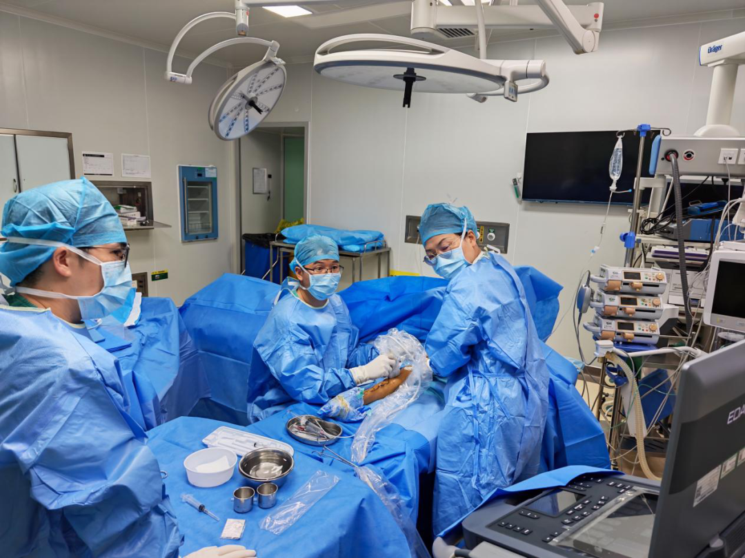 手术室内,气氛紧张而有序。欧阳昕副主任医师带领团队全神贯注,凭借丰富临床经验与娴熟操作技术,在超声设备引导下精准定位血管狭窄部位。