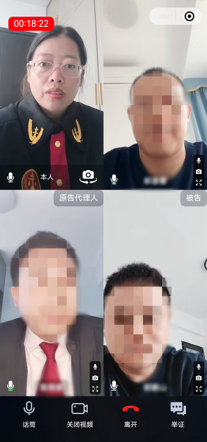 法官们的居家庭审场景,处处透着严谨与用心:工作手机居中摆放,屏幕调试至最佳角度;案卷按开庭顺序整齐码放,便于随时查阅;背景墙简洁干净,让庭审的严肃性不因“居家”打折扣。“就算隔着屏幕,也要让当事人感受到司法的庄重与温度。”法官们的默默坚守,化作了一场场规范有序的“云端庭审”。