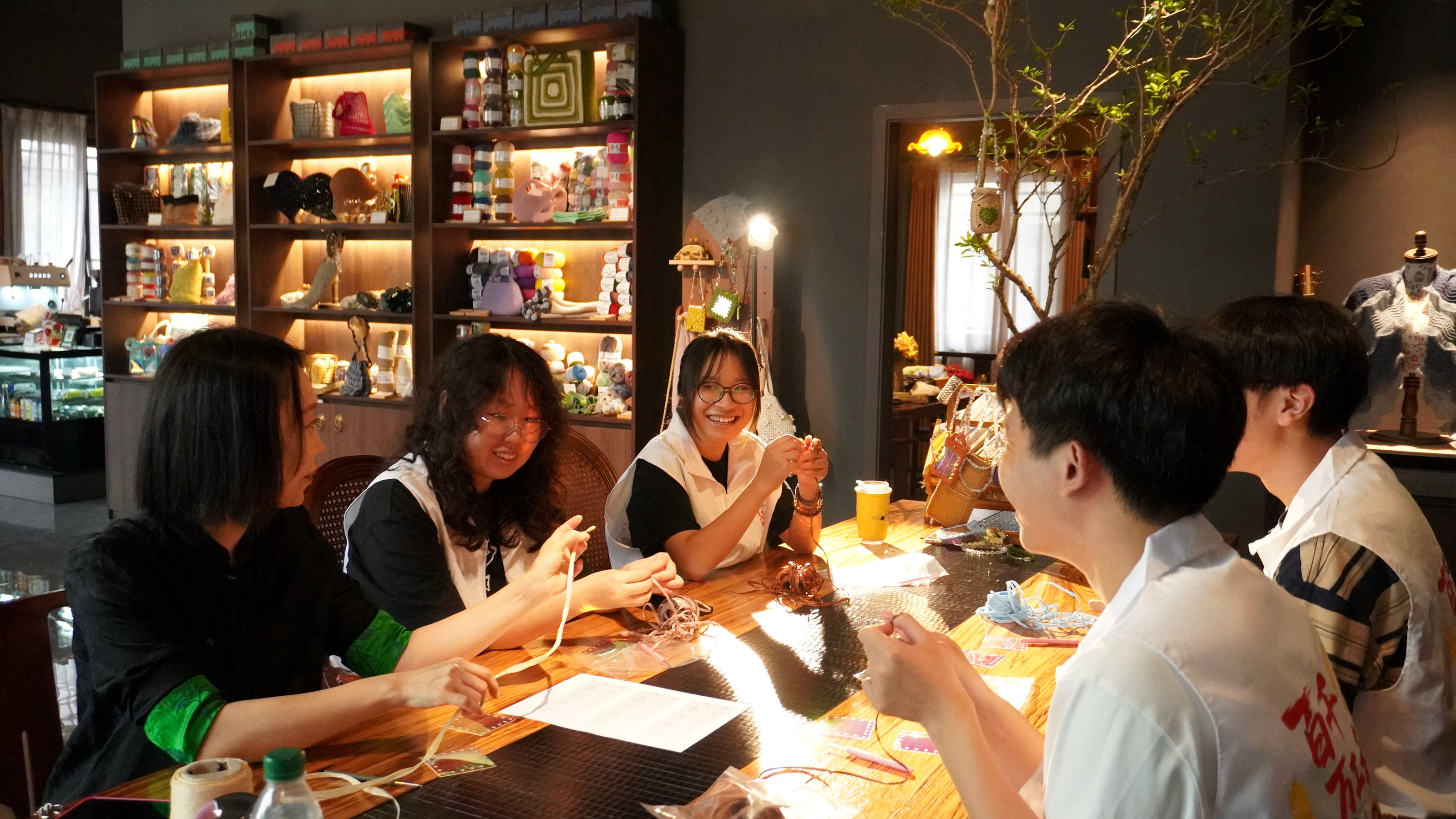 青年学子们的目光与脚步遍及江岭社区各处特色文化符号所在,在长守戏剧谷感受戏剧文化与古建筑活化的魅力,走进光武堂了解舞麒麟文化的深厚底蕴,探访江岭三河特色编织咖啡馆感受新兴特色产业配套,记录赤坳水库一带的自然生态景观……在实地了解的基础上,学子们进行了推动文化融合与传播的尝试。