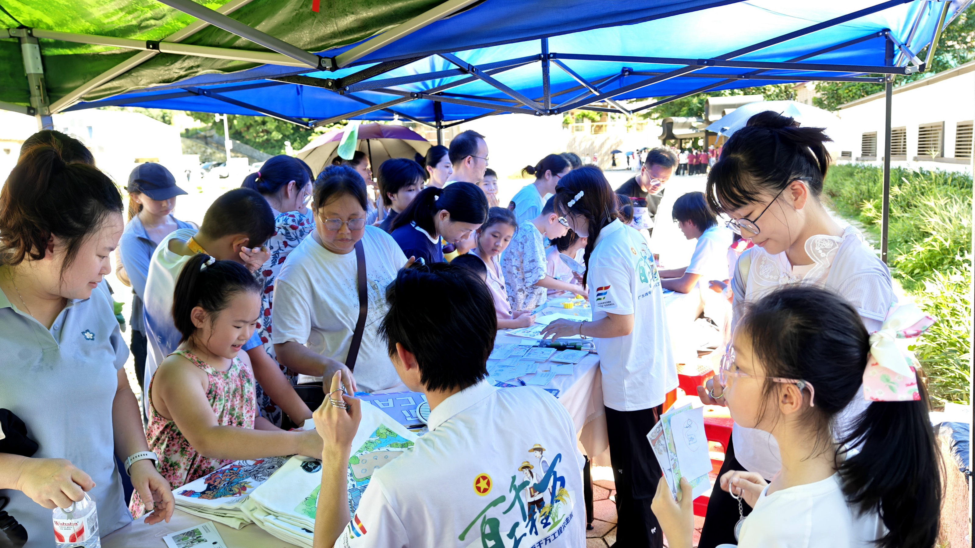 落地到线下,珠海科技学院客创先锋实践队联手江岭社区举办“乐游戏谷,客韵市集”暑期文化宣传游园活动,学子们设计了以客家围屋、非遗麒麟舞为灵感的系列文创礼品,设置打卡环节引导游客游历戏剧谷,通过互动游戏环节传递客家民俗知识。沉浸式体验让居民游客们兴致盎然,现场吸引了超过300名居民及游客前来参与,文创产品也得到了大家的好评。市民王女士带着6岁的儿子完成了全部打卡任务,兑换了一套长守戏剧谷文创产品:“平时工作忙,很少有机会和孩子一起体验传统文化,这个活动既好玩又有意义。”