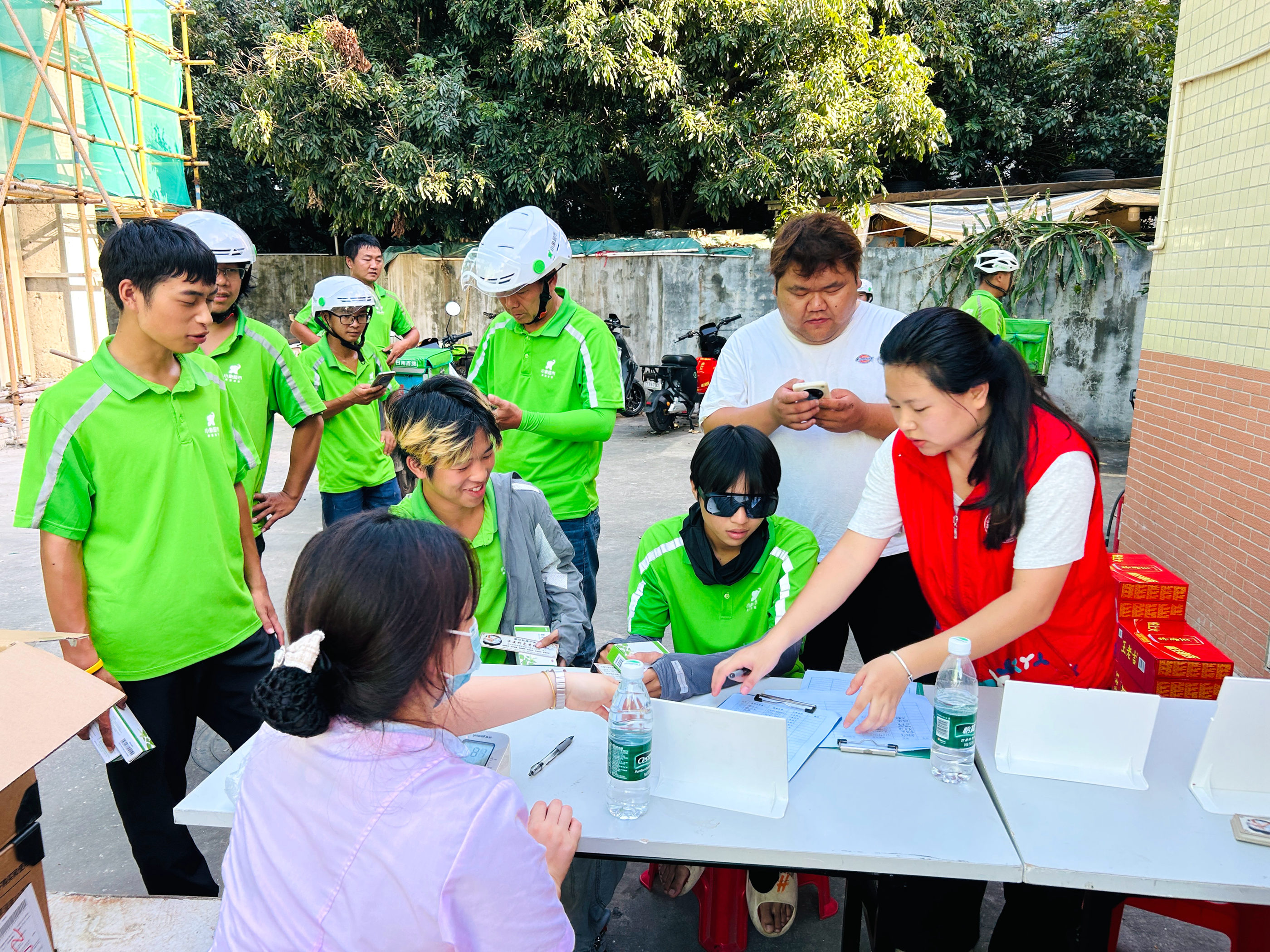 活动现场,香江社康中心的医生成了骑手的“健康知心人”。他们不仅为骑手免费提供血压测量、健康咨询等义诊服务,还结合骑手长期户外奔波的工作特点,现场开设了一堂简短却实用的“健康小讲堂”。医生生动细致地讲解了在户外高温等天气中长期工作的科学养生指南,以及遇到紧急情况时的应急处理措施。这些实用又“有料”的知识,吸引了众多骑手驻足聆听,赢得了阵阵好评。此外,主办方还贴心地准备了一批藿香正气水和常用户外健康物资,由站长统一接收并建立“健康小药箱”,方便骑手日常按需取用,为他们的健康保驾护航。这份“上门服务”的贴心与实在,让骑手纷纷点赞。