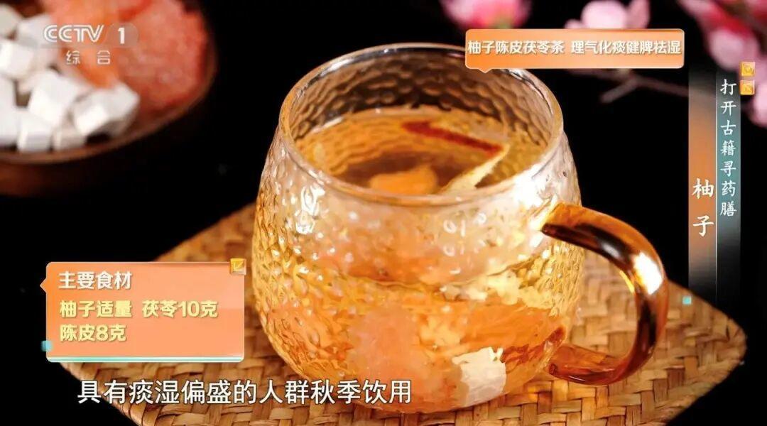 适合痰湿偏盛人群秋季饮用,取陈皮8克、茯苓10克、柚子适量,加入适量清水后煮20分钟左右即可。