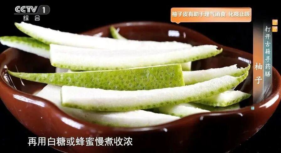 柚子皮内层是白瓤层,将其切条后用盐水浸泡、焯水去涩后再用白糖或蜂蜜慢煮收浓,能够制成蜂蜜柚皮蜜饯,是传统零食,也可以制成茶饮,有助于理气消食、止咳化痰。