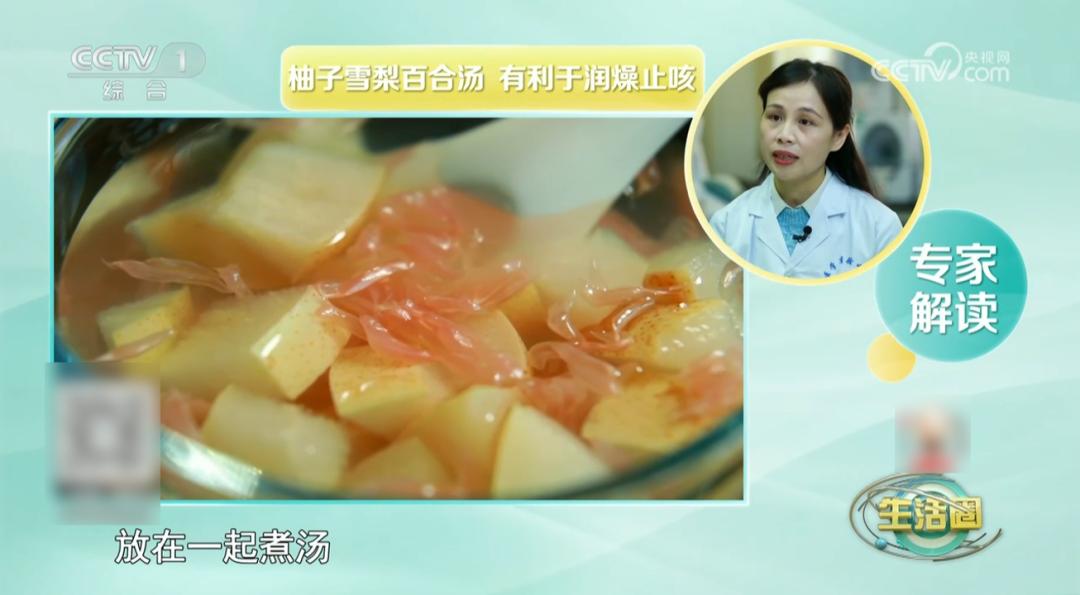 适合阴虚体质人群。如果你感到皮肤干燥、频繁干咳或大便不畅,可以将柚子、梨和百合一起煮汤。