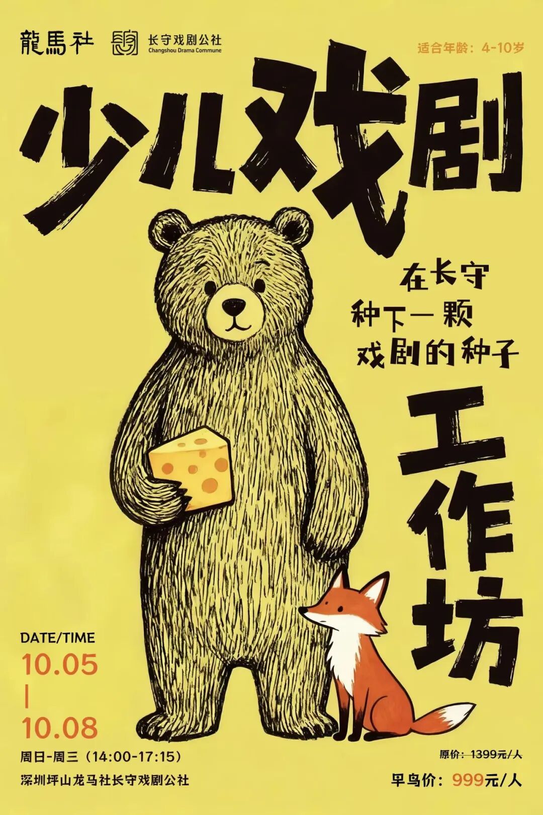 4天的沉浸式少儿戏剧工作坊!我们特邀北京专业戏剧导师,带领孩子们体验从戏剧启蒙到正式演出的完整艺术旅程。通过解放天性训练、剧本围读、角色塑造、服化道制作等丰富环节,孩子们将参与排演经典剧目《小熊请客》和《狐狸分奶酪》,并在最后一天登上舞台进行成果展演!