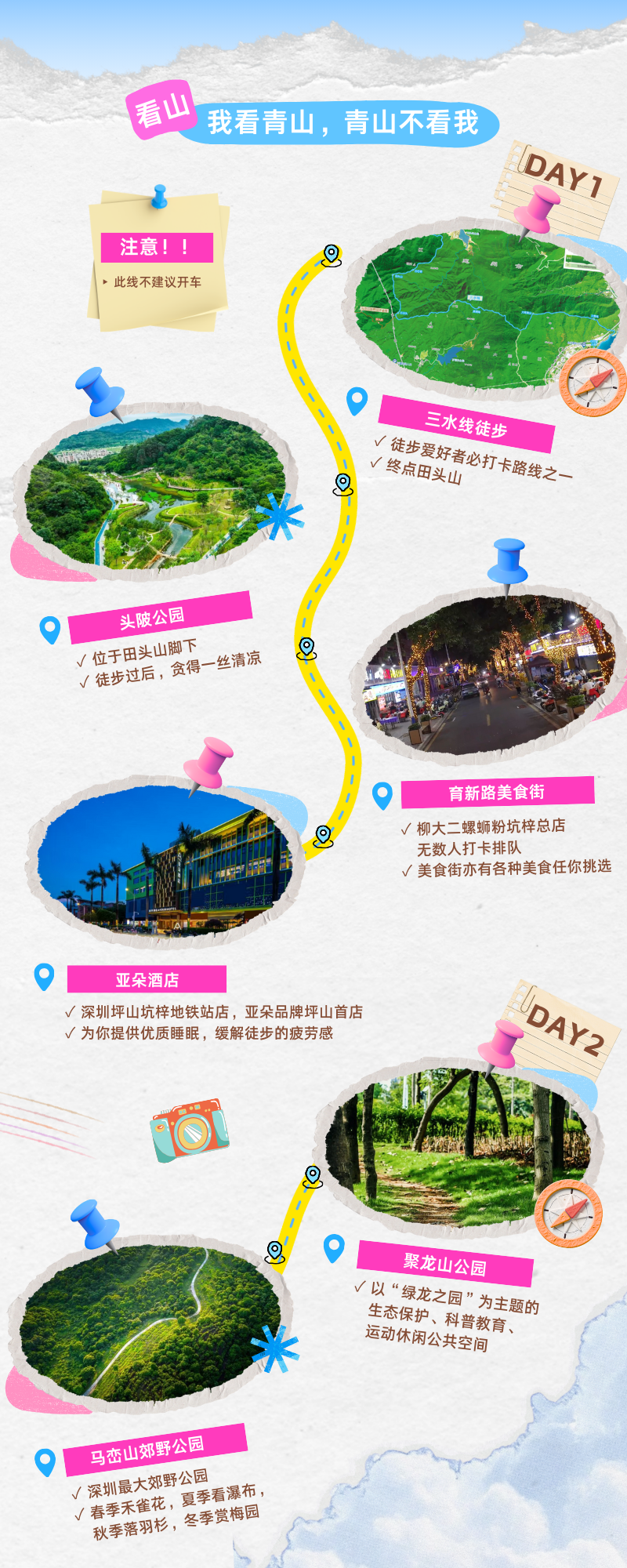 来坪山跟着路线走