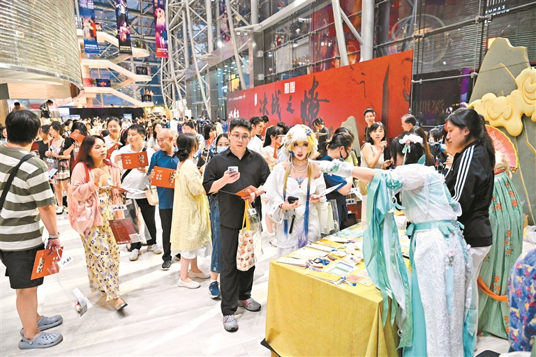 深圳保利剧院大堂成了“大唐集市”,现场热闹非凡。