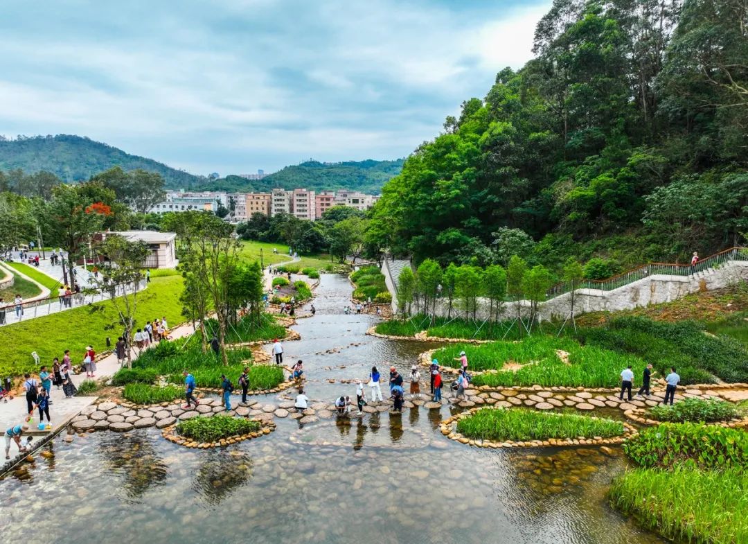 坪山头陂公园简直是亲子游玩的天堂。专为小朋友打造的鹅卵石河床,安全又有趣。小朋友可以在水里尽情地捞鱼嬉戏,感受大自然的乐趣。旁边还有大大的沙池,小家伙们拿着小铲子挖沙筑城堡,玩得不亦乐乎。