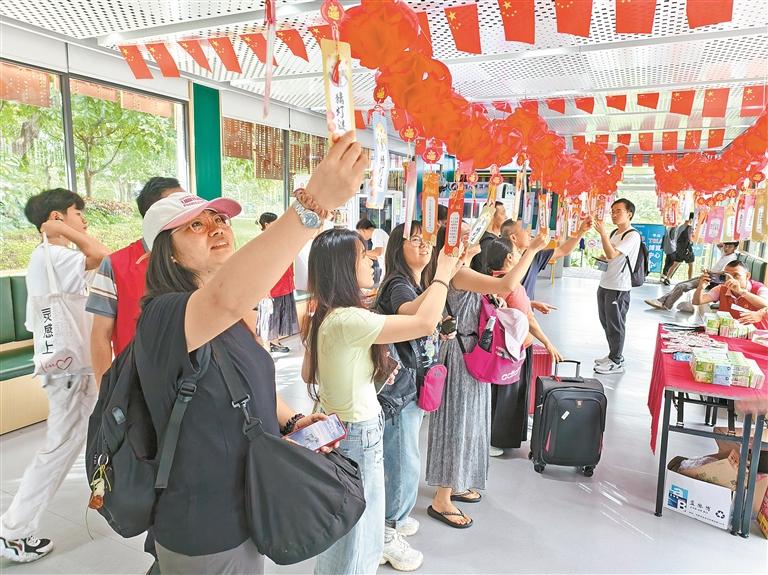 深圳新闻网2025年10月7日讯(深圳特区报记者 戴晓蓉 通讯员 肖兰 文/图)“中秋节坐公交跨城出行,没想到在转乘站里还能收到节日福利!”10月6日,前海湾深中跨市公交转乘站里红灯笼挂起来、灯谜贴起来,一场为节日里跨市出行人准备的中秋灯谜会在这里热闹举行。