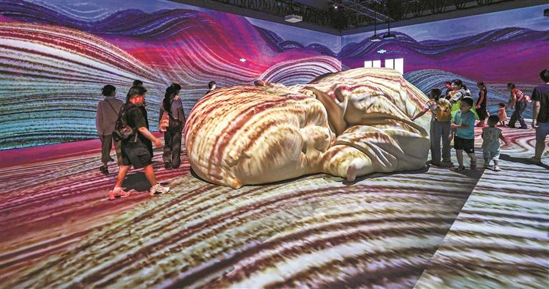 国庆中秋假期,曾入选《国家地理》全球50大艺术装置的现象级IP“大地之子”在深圳会展中心(福田)举办潮流光影艺术特展,吸引了众多市民前来参观。此次特展设置五大主题展区,构建出融合艺术、科技与互动于一体的沉浸式梦境乐园。深圳特区报记者 何龙 摄
