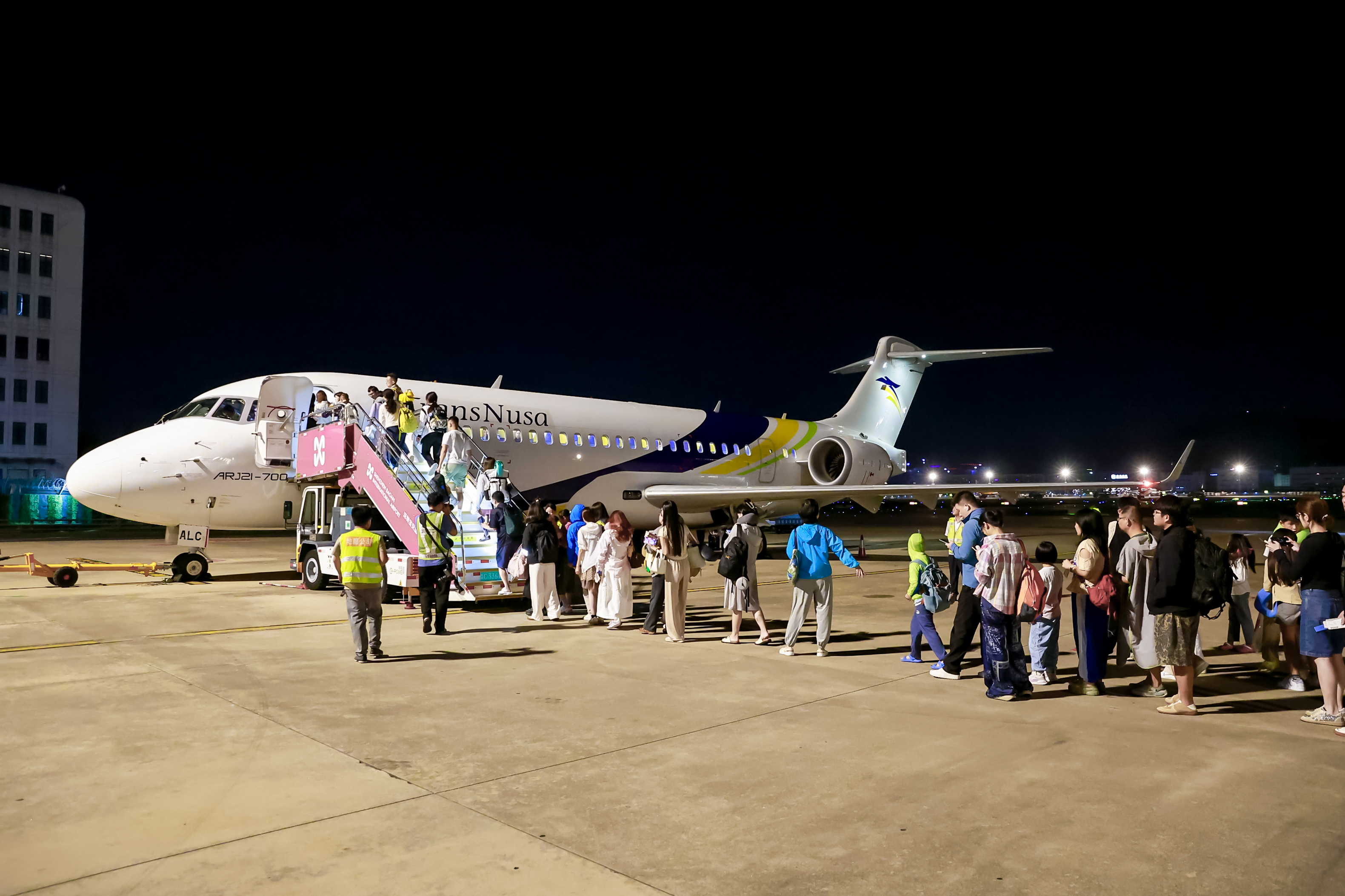深圳新闻网2025年10月5日讯(记者 韩翔 通讯员 刘韶滨 魏子潇)10月3日,深圳直飞印度尼西亚美娜多国际客运航线正式开通。该航线由印尼航司翎亚航空使用国产支线客机C909执飞,这是该机型在深圳机场的“首飞”,也是国产客机首次在深圳执行国际航线任务,对于推动国产客机国际化、品质化、网络化运营具有重要意义。