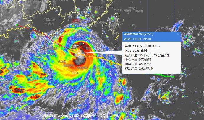 据@深圳天气,今年第21号台风“麦德姆”(台风级)4日19时中心位于深圳正南方453公里的南海海面上,中心风力12级(35米/秒),七级风圈半径300~400公里,强度与风圈维持不变。