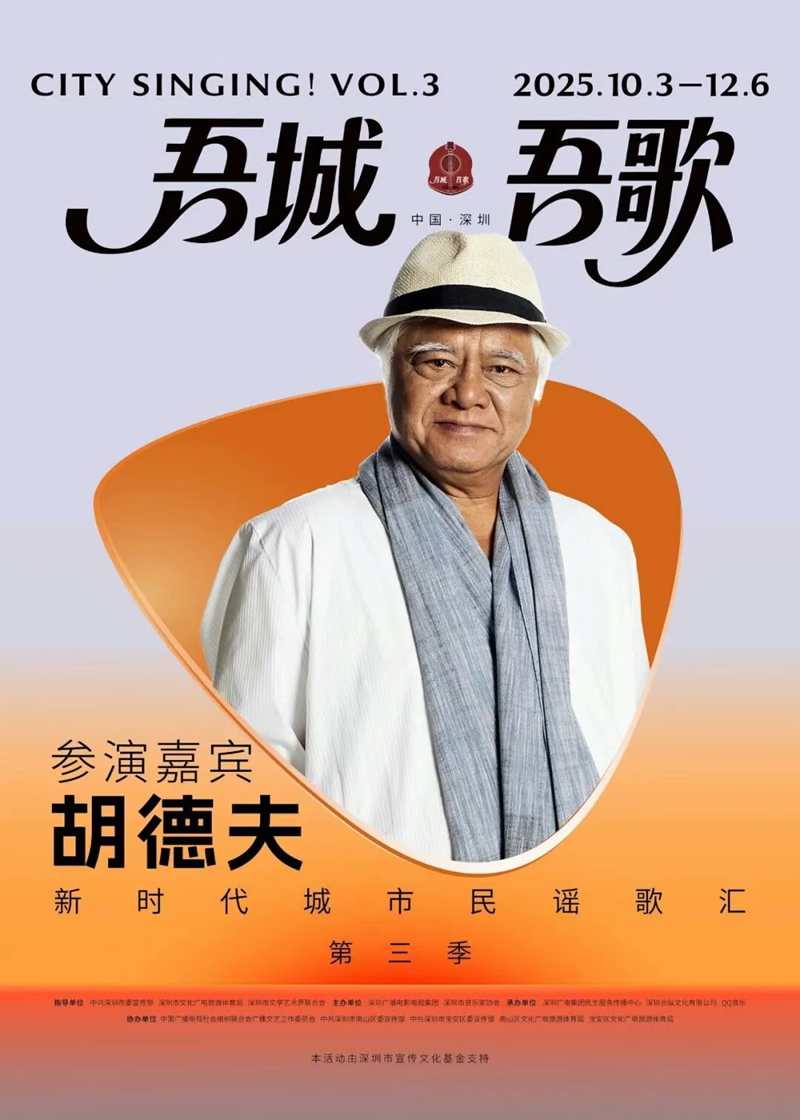 五十年前,那个在中国台湾土地上高举“唱自己的歌”旗帜的青年胡德夫,用一把浑厚的嗓音点燃了华语民谣的星火。时光快进到2025年10月,满头银发的他登上“吾城吾歌”舞台,心中仍怀揣比少年时代更炽热的赤子之心。他唱《匆匆》,唱《来甦秋思》,唱《太平洋的风》,老灵魂一开口,便是民谣该有的厚度。他将与深圳交响乐团童声合唱团的孩子们共同演绎《送别》,老树与新苗,让经典焕发新生,温暖浸润人心。