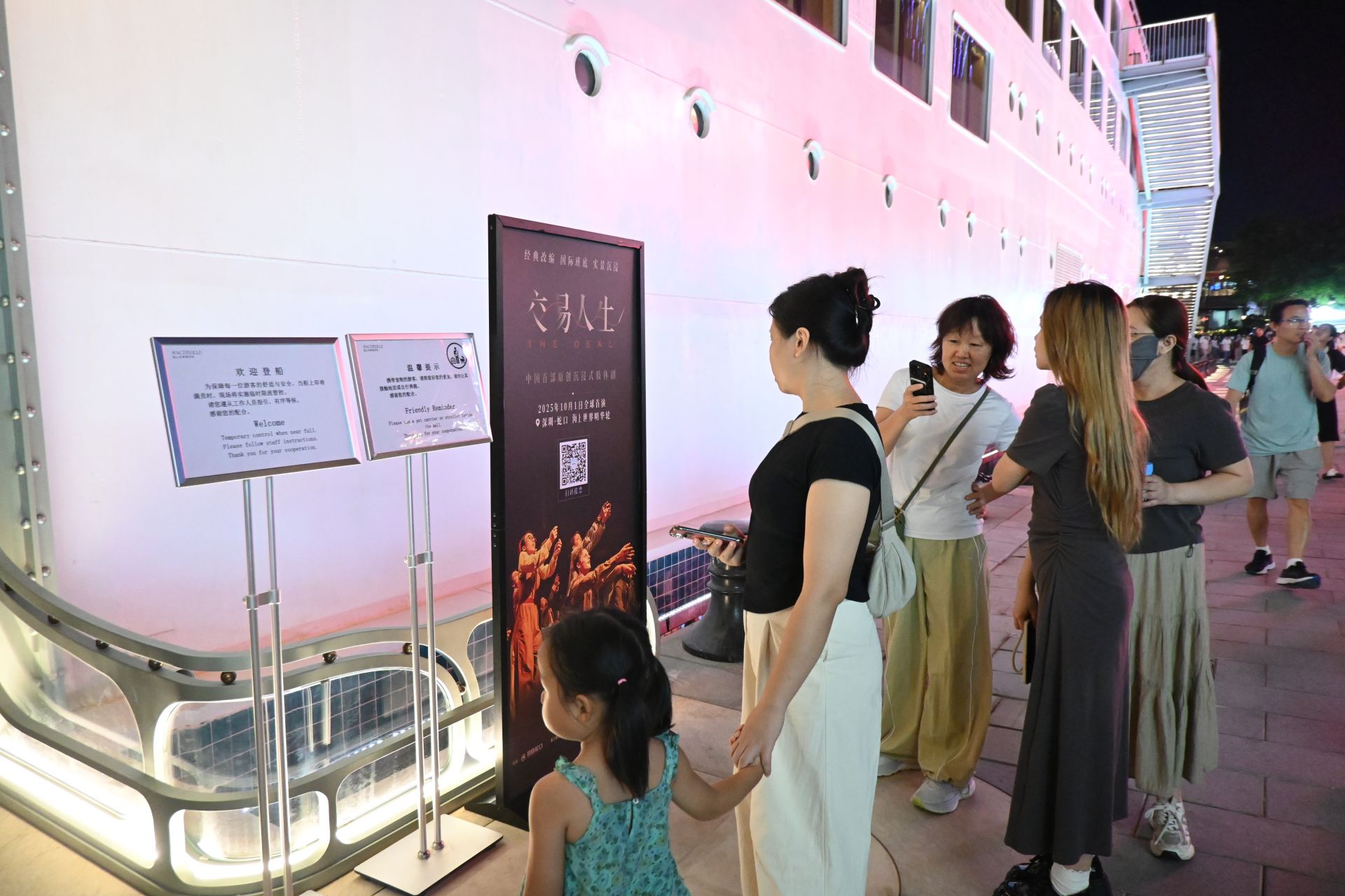 10月1日首演结束后,观众张小姐感慨:“登上明华轮、走进《交易人生》,仿佛推门进入另一个‘平行宇宙’。剧场里的8大演出场景、3000余件道具,让人一秒梦回‘1930年代的巴黎’,这些华美精致的道具,哪怕是‘细节控’吹毛求疵也挑不出错。”