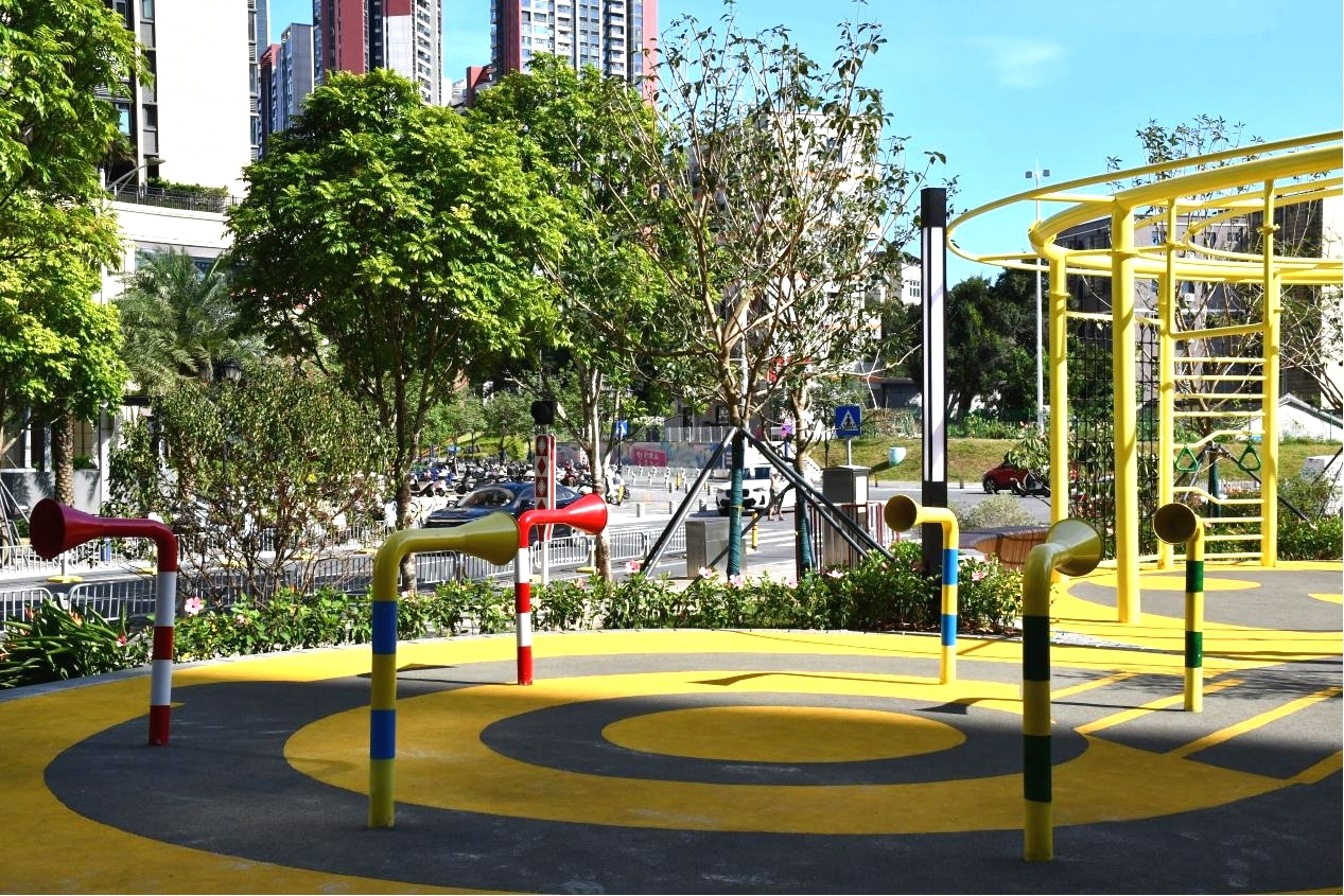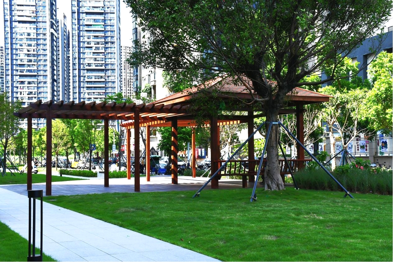 深圳新闻网2025年10月10日讯(记者 程熙)近日,坪山区恒大成小区二期东门门前的“联馨绿廊”口袋公园开园,崭新的休闲设施、葱郁的绿植吸引众多居民前来打卡,大家或带着孩子在儿童游乐场嬉戏,或约上邻里在廊亭闲聊,尽情享受这份“推窗见绿、步行入园”的惬意。