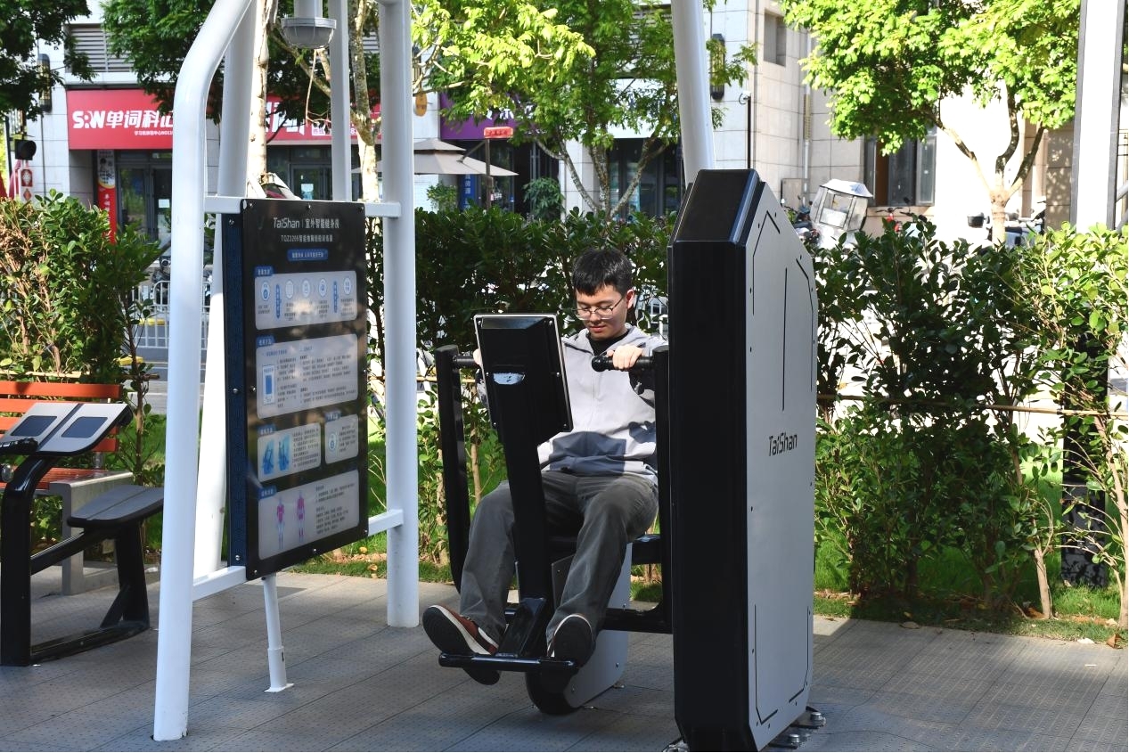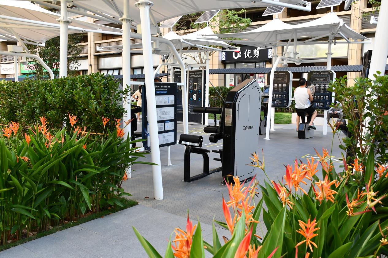 沿着绿道往里走,会发现这座小公园藏着不少“小心思”:近300平方米的户外智能健身区里,漫步机、引体架、腹背训练器等器材一字排开,老人们戴着智能设备就能测运动数据;约260平方米的儿童游乐场用的是环保软塑地面,沙池、秋千、滑梯组成“小天地”,家长坐在旁边的休憩椅上就能照看;126平方米的休闲廊亭更是居民的“歇脚宝地”,累了靠在椅上歇会儿,闻着旁边香樟的清香和邻里聊聊家常,惬意又舒服。